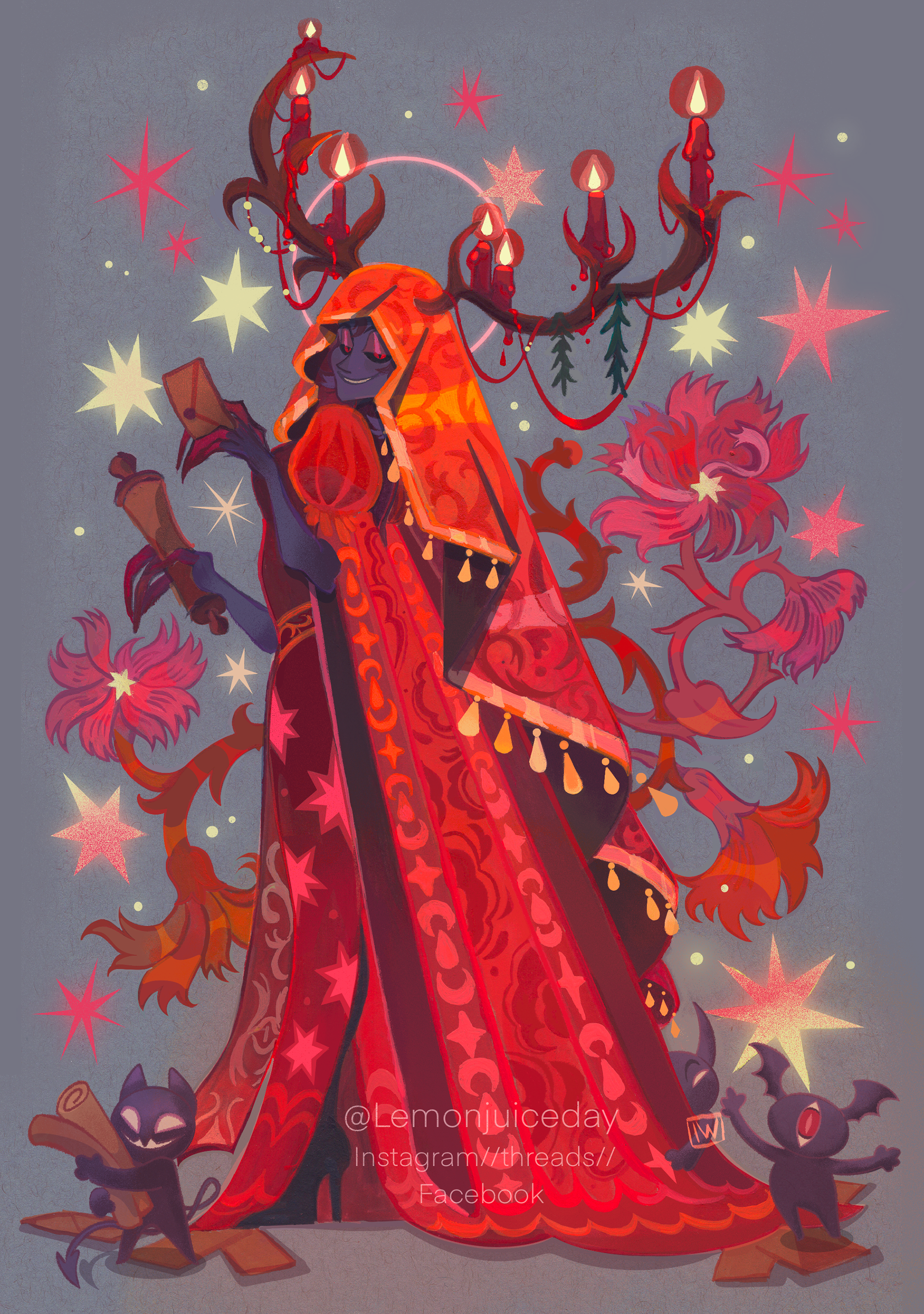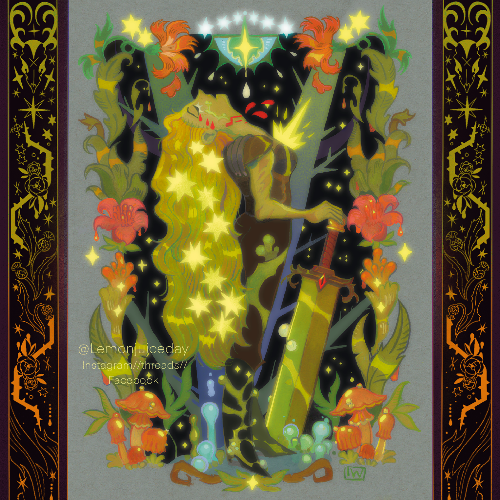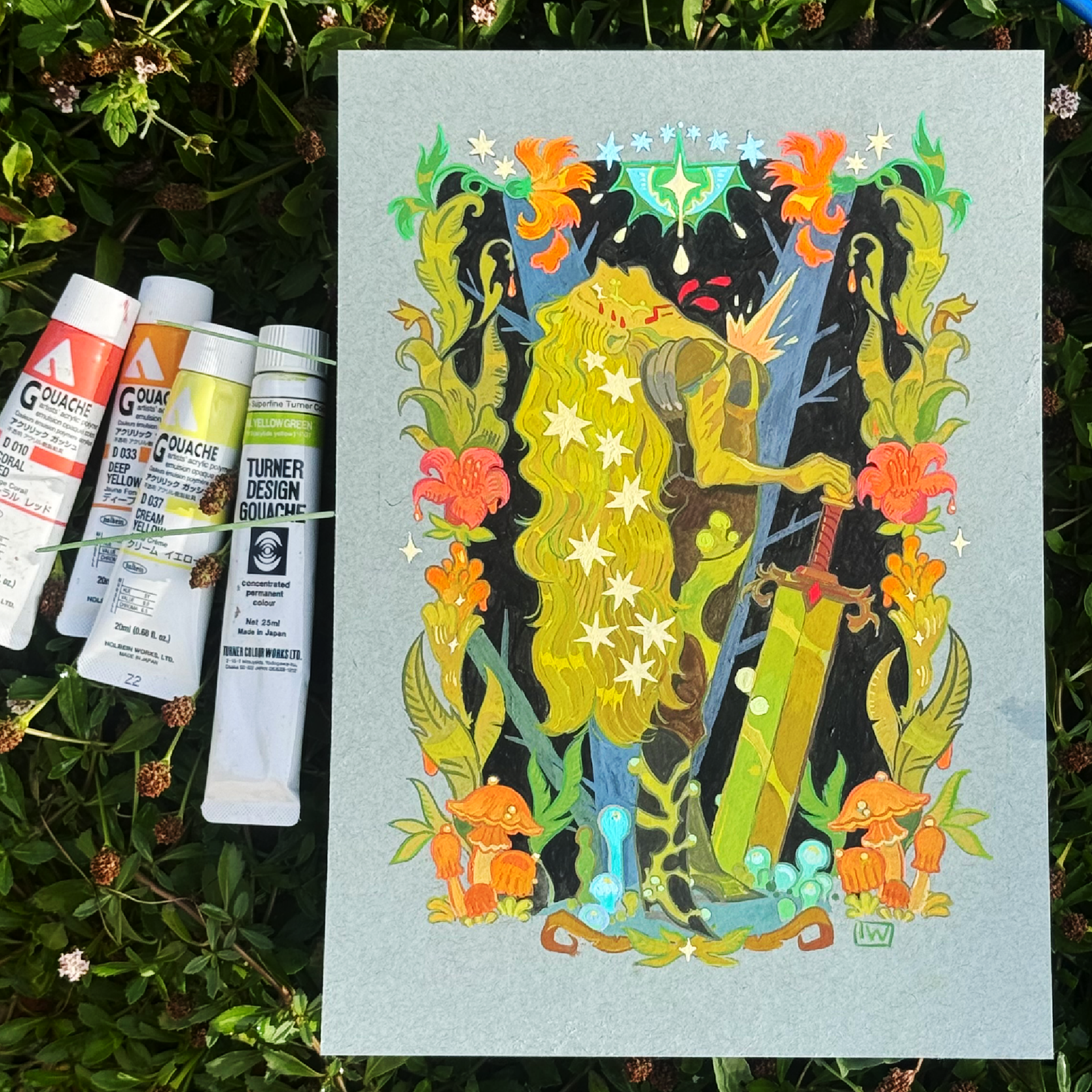 A series of Monsters mixed with nature and flowers made with gouache. This is a work in progress for a future Artbook project.
